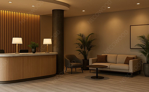 WPC (কাঠ-প্লাস্টিক কম্পোজিট) সিলিং সিস্টেমগুলি আতিথেয়তা পরিবেশে প্রয়োজনীয় দৃঢ় কর্মক্ষমতা বৈশিষ্ট্যগুলির সাথে কাঠের নান্দনিক উষ্ণতাকে একত্রিত করে। হোটেল অ্যাপ্লিকেশনের জন্য, সবচেয়ে মূল্যবান বৈশিষ্ট্যগুলির মধ্যে রয়েছে: