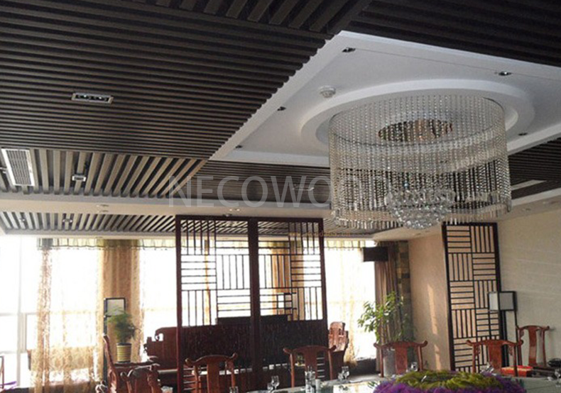 কাঠের প্লাস্টিক কম্পোজিট (WPC) থেকে তৈরি—প্রাকৃতিক কাঠের ফাইবার এবং উচ্চ-গ্রেড পলিমারের মিশ্রণ—নেকোউড সিলিং প্যানেলগুলি আসল কাঠের উষ্ণতা এবং সৌন্দর্যকে ক্যাপচার করে যখন ওয়ারিং, ক্র্যাকিং বা ঘন ঘন রক্ষণাবেক্ষণের মতো সমস্যাগুলি দূর করে৷